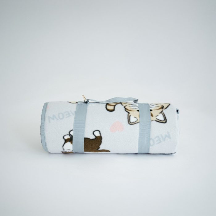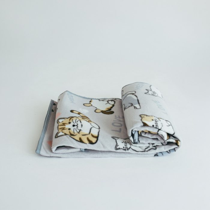A pléd kialakítása a mindennapi használatot támogatja: könnyen összehajtható, így tárolása és szállítása egyszerű. A gyerekek számára biztonságos, barátságos érzetet kelt, miközben meghatározza saját kis játék- vagy pihenősarkukat. A jól látható cicás minta segít abban is, hogy a kicsik könnyen felismerjék és megszeressék saját plédjüket.
