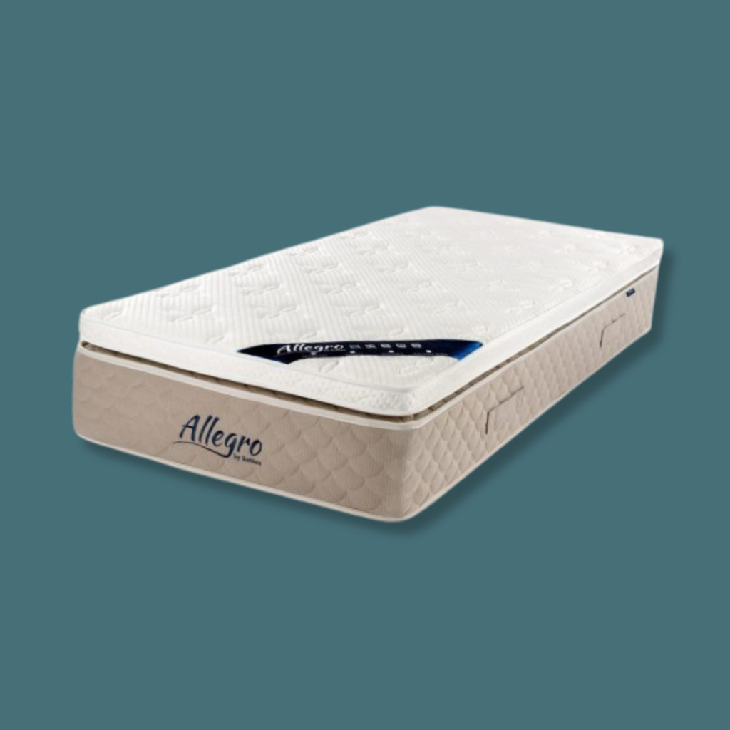 A 32 cm vastagságú Allegro Elegance táskarugós matrac a német minőségű 5 zónás zsákrugós rendszernek köszönhetően már önmagában is elképesztő kényelmet és páratlan ergonómiát képvisel. A matrac tetején található box pillow top, extra réteg memory hab és hideg hab kombinációjával összeállított alapanyag összetételének köszönhetően kényelmesen pihenhetjük ki a mindennapok fáradalmait.